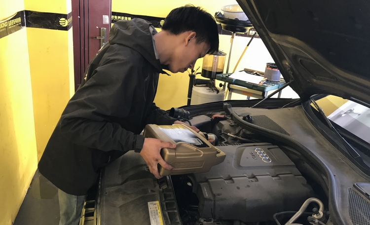 接着彻底清洗发动机。彻底清洗发动机可以避免不同种类机油品质间可能发生的。物理、化学反应,使新机油变质,影响使用性能,最后损伤你的发动机。因此应该定期使用专业的发动机“清洗”产品进行发动机清洗。如果您长期一直使用同一品牌,同一规格机油,在保证旧润滑油放净,同时更换机油滤芯的前题下,不需要在每次更换机油时都清洗发动机,可直接加入新润滑油。