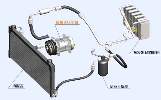 汽车发动机的冷却系为强制循环水冷系,即利用水泵提高冷却液的压力,强制冷却液在发动机中循环流动。冷却系主要由水泵、散热器、冷却风扇、补偿水箱、节温器、发动机机体和气缸盖中的水套以及附属装置等组成。在冷却系统中,其实有两个散热循环:一个是冷却发动机的主循环,另一个是车内取暖循环。这两个循环都以发动机为中心,使用是同一冷却液。