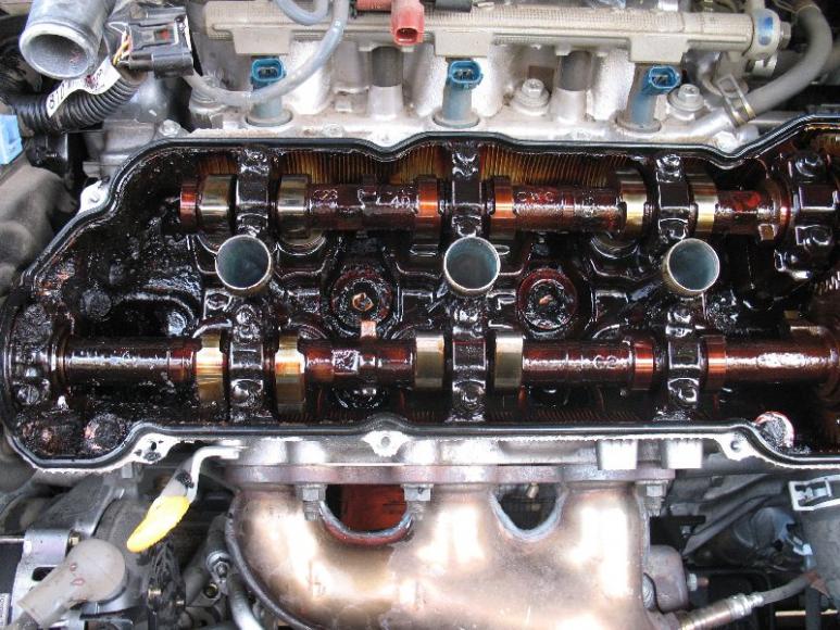 如果机油内的清净剂和分散剂量不够,或是根本没有,随着发动机不断高、低温循环工作,加上水蒸汽和汽油蒸汽的混合催化,导致油泥积累,时间久了,附着在金属表面的油泥越来越多。