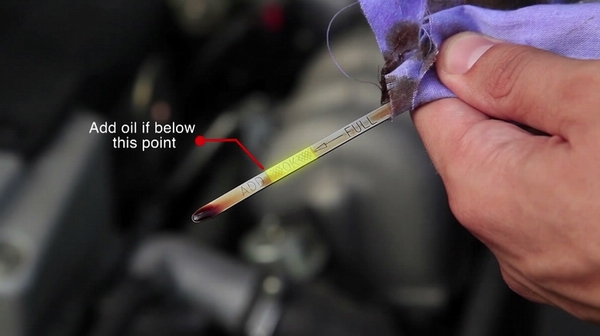 由于上述测试热车检查法当中确定了热车检查法的不准确性,所以我们选择了更长时间的静车“冷车检查法”。待机油都回落到油底壳当中之后,我们通过机油尺便可准却的测试出机油的液面高度。通过机油尺判断出发动机缺少机油的量之后,我们就可以开始添补机油了。