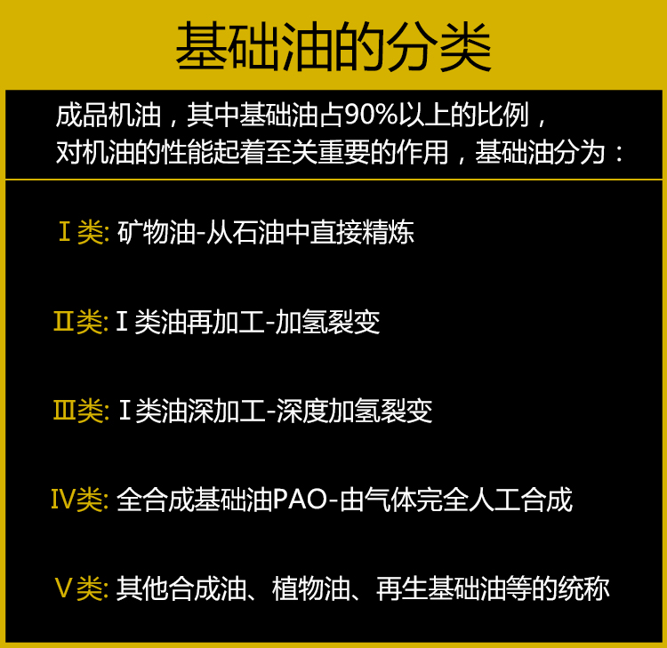 首先基础油密度会随着基础油成分变化,基础油密度随其组成物当中含碳、氧、硫的数量的增加而增大(因为氢原子质量很小),因而在同样粘度或同样相对分子质量的情况下,含芳烃多的,含胶质和沥青质多的基础油密度最大,含环烷烃多的居中,含烷烃多的最小。基础油按照饱和烃含量、硫含量、粘度指数三项指标的大小分为I、II、III类和IV类,I、II、III类为原油中提取加工的产品,饱和烃为烷烃,含量依次增加;IV类油为聚α-烯烃合成,在相同粘度(与相对分子质量有很大相关度)下,与I、II、III类比更纯净、分子量更低,所以密度也就最低。简言之,就是在相同粘度的情况下,从I类油到IV类油,密度会越来越低。