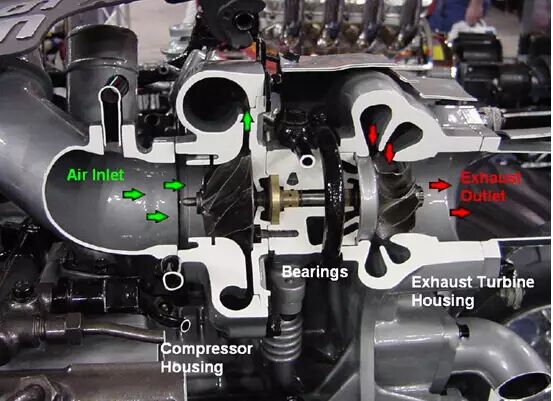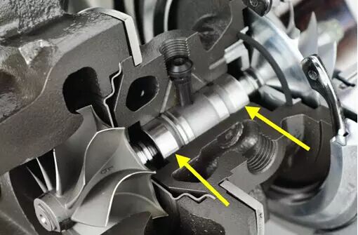 涡轮增压器是由旋转的叶片来压缩空气的。涡轮叶片在涡轮壳体里面旋转,就需要轴承来支承叶片转轴。涡轮的轴承有两种,滚珠(滚针)轴承和浮动轴承。
