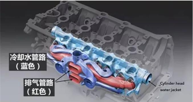 集成缸盖,全称为“内置式气缸盖排气歧管技术”。是在原本就已经十分复杂的气缸盖中再加入排气歧管,而本身紧凑的气缸盖内构件就已经很多,所以这项技术考验的是厂商的结构布置、力学设计、材料应用以及更为精尖的机件加工能力。