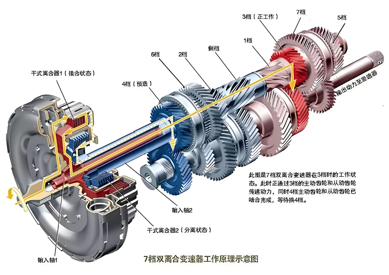 直译过来就是“双重离合器的变速器”,简化称作双离合变速器。