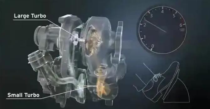 进口润滑油代理|而后劲不足的解决方案就是“二级涡轮增压”,即依然采用“低惯量”涡轮,在低转速时低惯量涡轮会先介入,保证中低转速拥有充足的扭矩。再增加大惯量涡轮或者“机械增压器”,当转速达到一定值,大惯量涡轮的旁通阀会开启,让废气同时带动两颗涡轮,并且由于采用串联结构,可以实现增压叠加的效果,满足发动机高转速工况的要求。