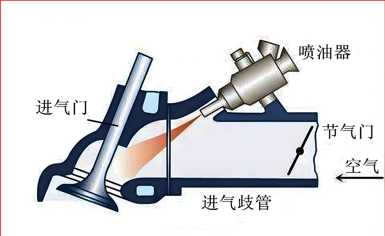 歧管喷射的喷油嘴布置在进气歧管末端、紧挨着进气门的背面。活塞吸气时,智能控制系统会让喷油嘴喷出雾化的燃油,由于进气歧管内的空间充足,所以燃油喷射后更容易与涌入的空气流进行充分且均匀的混合,最后一起被气缸吸入燃烧。