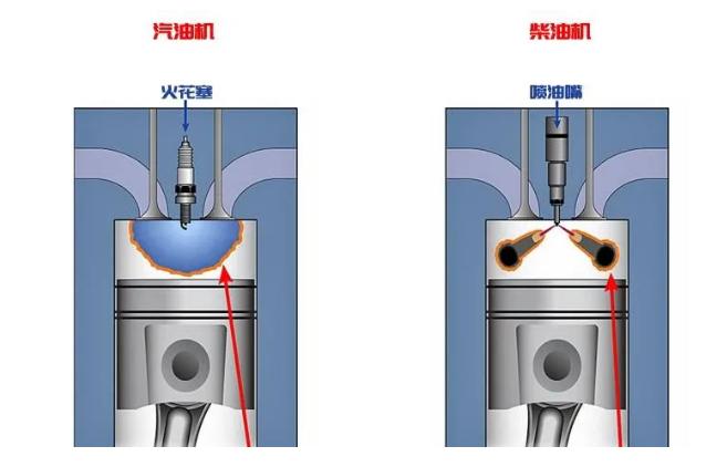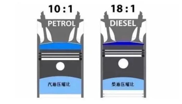常规柴油发动机的压缩比一般在16:1~22:1之间,最高可以做到26:1;而汽油发动机的压缩比在8.0:1-12:1之间。压缩比越高,燃油转化率也越高,能获得更高的燃烧效率,所以柴油机的热效率高于汽油机。