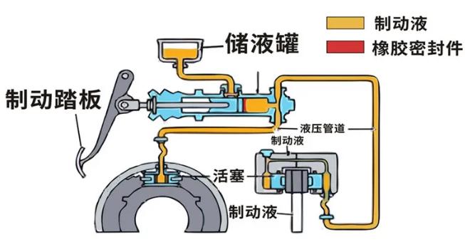当制动管路内出现气泡占据液体空间时,刹车会变得很软,实际上就是制动踏板行程被拉长的状态。因为液体几乎不会被压缩,所以制动踏板踩下多少,制动液就会推动活塞移动多少。但气体是容易压缩的,当制动液沸腾、管路中产生大量气泡时,踩下制动踏板一段行程可能仅仅是压缩气泡的过程,而制动器活塞并未被推动。