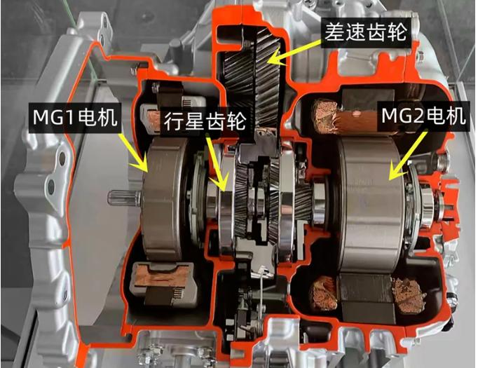 E-CVT:专为混动设计,核心是行星齿轮组,结合发电机和驱动电机协调动力分配,无需液力变矩器或钢带结构。