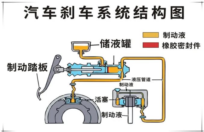 当制动管路内出现气泡占据液体空间时,刹车会变得很软,实际上就是制动踏板行程被拉长的状态。因为液体几乎不会被压缩,所以制动踏板踩下多少,制动液就会推动活塞移动多少。但气体是容易压缩的,当制动液沸腾、管路中产生大量气泡时,踩下制动踏板一段行程可能仅仅是压缩气泡的过程,而制动器活塞并未被推动。