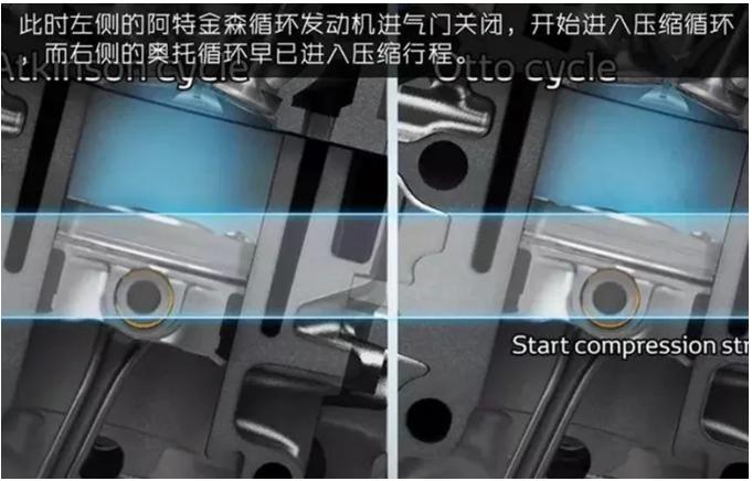 对此,英国工程师詹姆斯.阿特金森利用一套复杂的连杆机构,让活塞在做功冲程的行程比压缩冲程的行程更长,充分利用废气的能量,从而提高发动机的经济性。这就叫“阿特金森循环”。