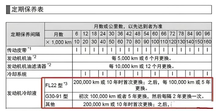一般汽车的保养手册都会有详细的各类保养项目和周期,就看防冻液所对应的公里数和时间就可以更换了。多数车使用的都是普通防冻液,主要成分是就乙二醇的绿色防冻液,更换周期一般在3年或者6万公里左右;那红色的一般在5年或10万公里左右。防冻液的更换周期和机油类似,有时间和公里数的双重标准,哪个先到以哪个为准。