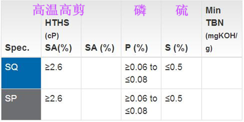 德国进口润滑油|SQ在SP级别的基础上,进一步提高了机油在清净分散性、高温抗氧化性、抗低速早燃、涡轮增压器保护和燃油经济性等方面的性能要求。而SQ在高温高剪切(HTHS)、硫(S)磷(P)含量上与SP基本一致。