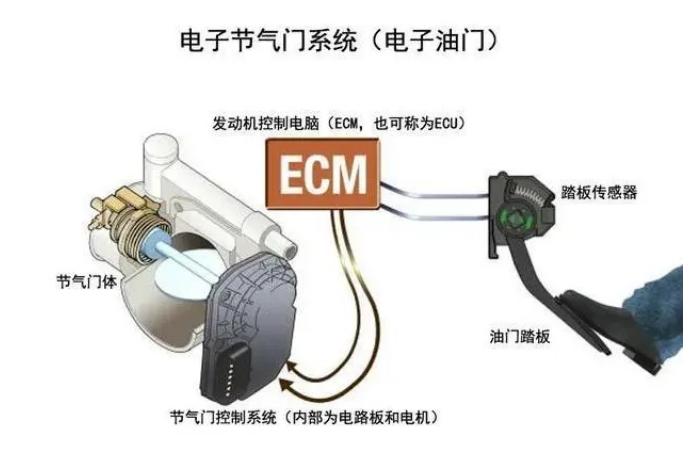 首先汽油引擎是靠进气量量来调节输出功率,发动机运转时各种传感器先计算进气量,再根据空燃比计算出喷油量并控制喷油嘴喷油。节气门位于发动机进气道上,类似阀门一样可以调节开度,从而控制发动机的进气量,而节气门就是由油门踏板来控制的。