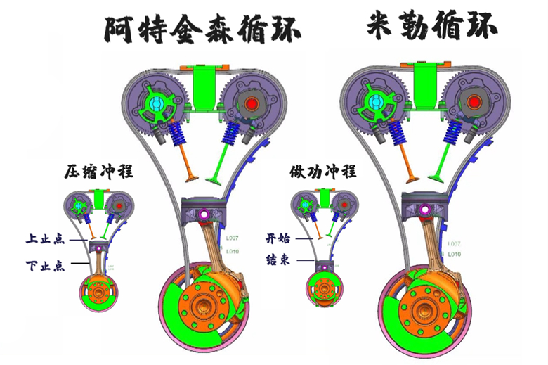 自然吸气发动机通过米勒循环或阿特金森循环优化热效率。这类循环通过缩短压缩行程、延长膨胀行程,使每次循环做功更多,从而提升热效率。