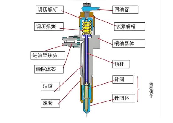 长期受到高压油流的冲刷,针阀喷孔会逐渐扩大,导致喷油压力降低、喷射距离缩短、雾化不良,以及缸内积碳增多。当针阀偶件严重磨损,或针阀体与喷油嘴壳之间的配合不够紧密时,喷油嘴的回油量会显著增加,导致回油管损坏。
