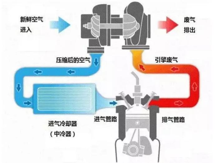 进口润滑油|涡轮增压技术是利用发动机废气的能量驱动涡轮增压器的涡轮,带动在进气端的叶轮压缩进气,可以获得较高的进气歧管压力,这样发动机在进气门开启期间,可以获得更高密度和更大流量的空气,以提高发动机输出功率和转矩。同时,发动机都会在增压器压端出口后管道加装一个中冷器,用来降低被压缩空气温度,以进一步提高空气密度,同时改善发动机燃烧,降低排放和油耗。