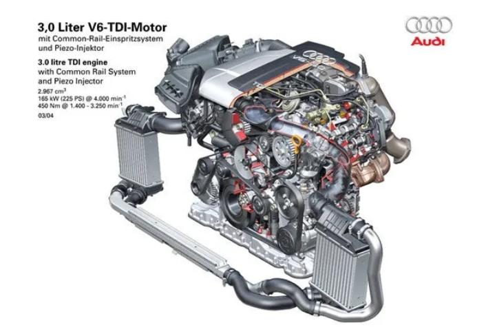 2008年,奥迪发布了3.0 TDI引擎,意味着第三代TDI的诞生。在第二代的基础上,添加了燃烧室压力传感器和超低排放系统,利用氧化转化器、颗粒捕获器、氮氧化物催化转化器,对排放废气进行三级处理。