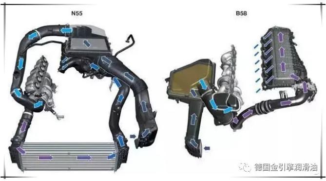B58最大变化采用水冷式中冷器,布置在发动机上面,缩短了进气道,提升了油门响应速度。