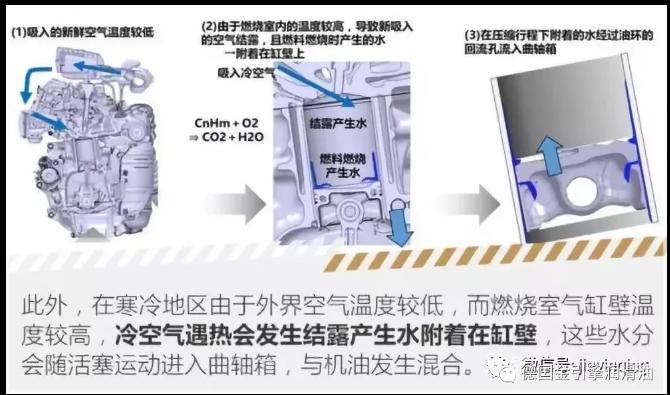 进口润滑油代理|城市大部分车辆的使用率集中在上下班,路途较短。我们把经常行驶3至5公里到达目的地的称做短途行车。冬季经常短途行驶的车,机油乳化是很常见的,不是故障,也不是曲轴箱通风设计的不好。主要原因是发动机启动时进入曲轴箱的空气含有大量的水蒸气。