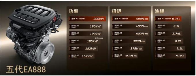 这套动态调节系统让发动机在1700转就能爆发400N·m扭矩,功率相比第三代EA888高功率版本提升了14.3%,达到了200kW(272马力)。搭载这款发动机的途昂Pro官方零百加速数据是7.6秒。