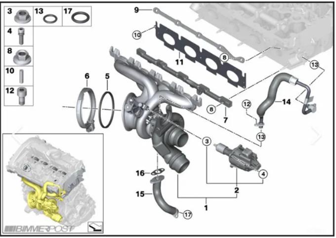 B48TU的涡轮增压器与发动机整体优化集成,包括采用缸盖与缸体独立控温和电子节温器,提升冷启动速度和高负荷散热效率。低功率版采用缸盖集成排气管,高功率版采用独立排气歧管。