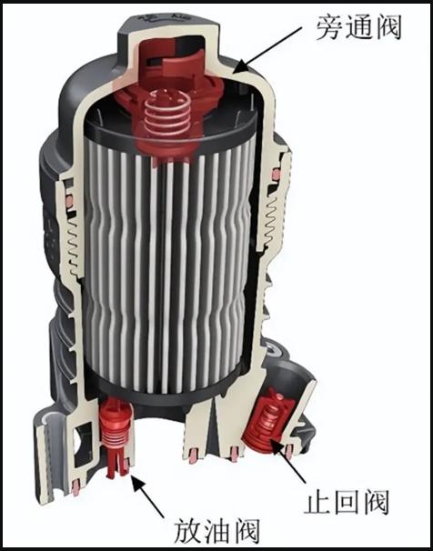 滤清器严重堵塞时,其旁通阀会开启,使未经过滤的机油进入主油道。若旁通阀设定不当或损坏,也会导致机油压力异常。