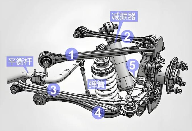 五连杆结构有助于抑制刹车点头现象,使车辆在紧急制动时姿态更稳定,提升安全性。