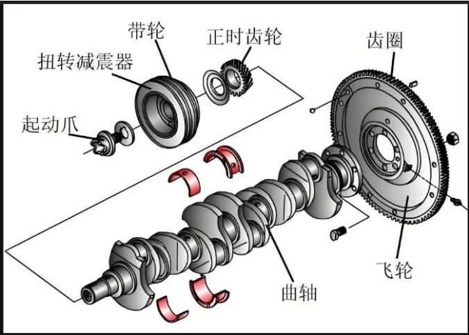 飞轮外缘装有齿圈,与起动机的驱动齿轮啮合。启动时,起动机带动飞轮旋转,从而驱动曲轴转动,完成发动机点火启动。齿圈若出现缺齿或严重磨损,会导致起动机空转无法启动,是老旧车辆常见故障之一。