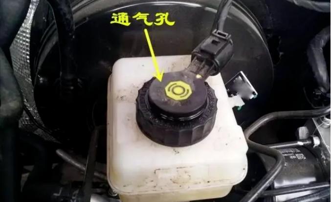 第一,就是刹车油盒上面的加油口盖。在这个加油口盖上,有一个通气孔,作用是平衡刹车油盒内与外界的气压。外界的空气通过这个小孔进入到刹车油盒内,空气中水分就会被刹车油吸收,从而导致刹车油含水量增高。在一些空气湿度很高的地区,刹车油中的水分主要是通过这个渠道进入的。