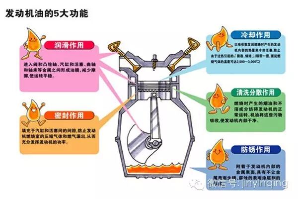 机油的作用是:润滑、冷却、密闭、清洁、防锈。